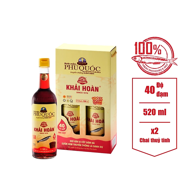 Nước mắm Khải Hoàn Phú Quốc 40 độ đạm 520ml cặp 2 chai