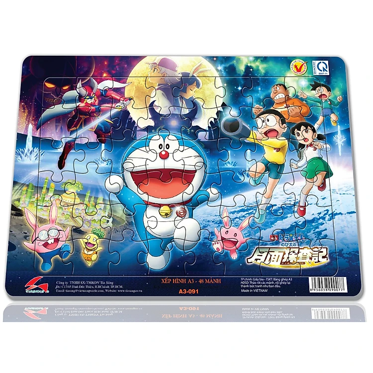 Tranh xếp hình Tia Sáng Nôbita - Thám hiểm mặt trăng (48 Mảnh Ghép) - Tặng kèm câu đố mặt sau cho bé