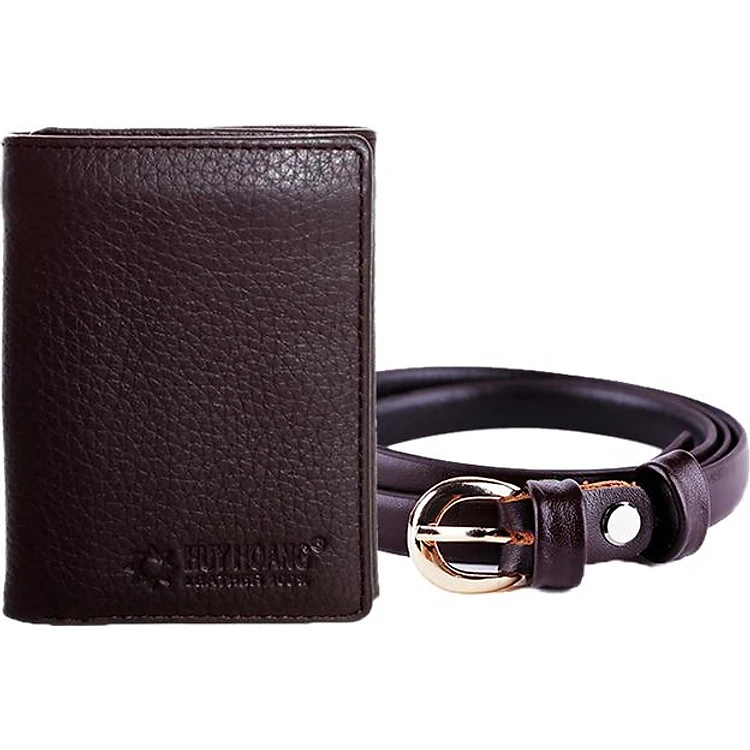 Combo Bóp & Thắt Lưng Da Bò Huy Hoàng HT3138-HT5112 - Nâu