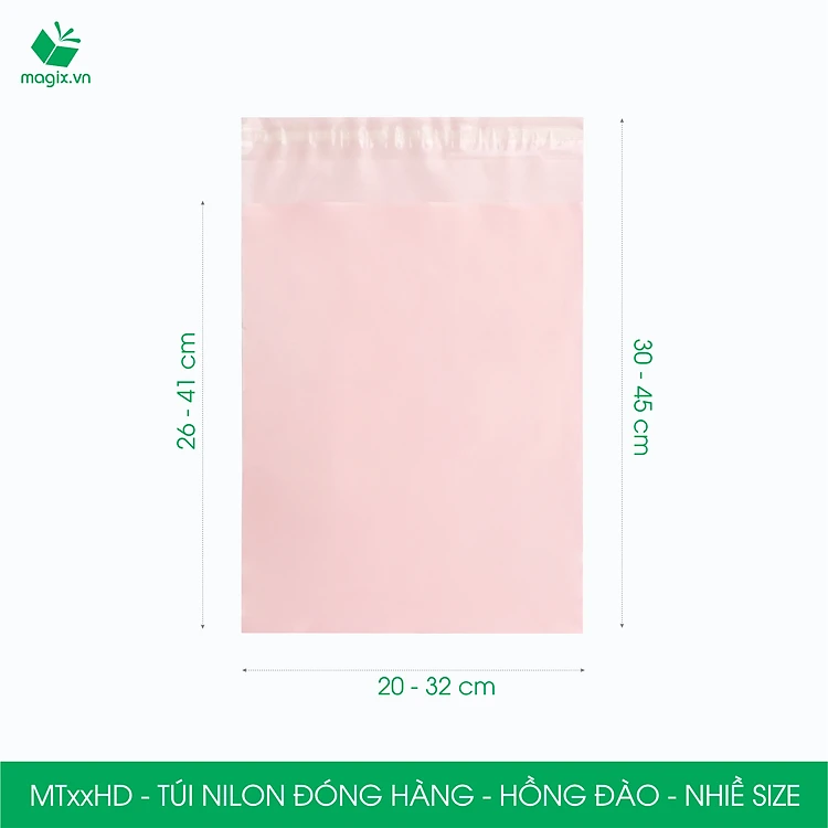 Combo 100 túi nilon gói hàng - túi niêm phong đóng hàng màu hồng đào - NHIỀU KÍCH THƯỚC