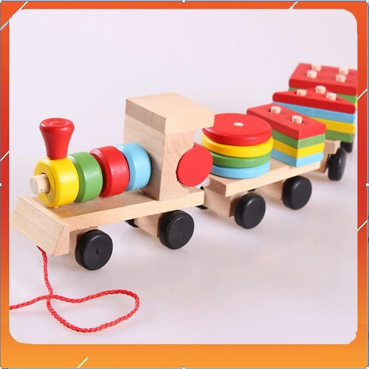 Đồ chơi đoàn tàu hỏa thả hình khối bằng gỗ nhiều màu sắc cho bé - Đồ chơi gỗ thông minh phát triển trí tuệ bé