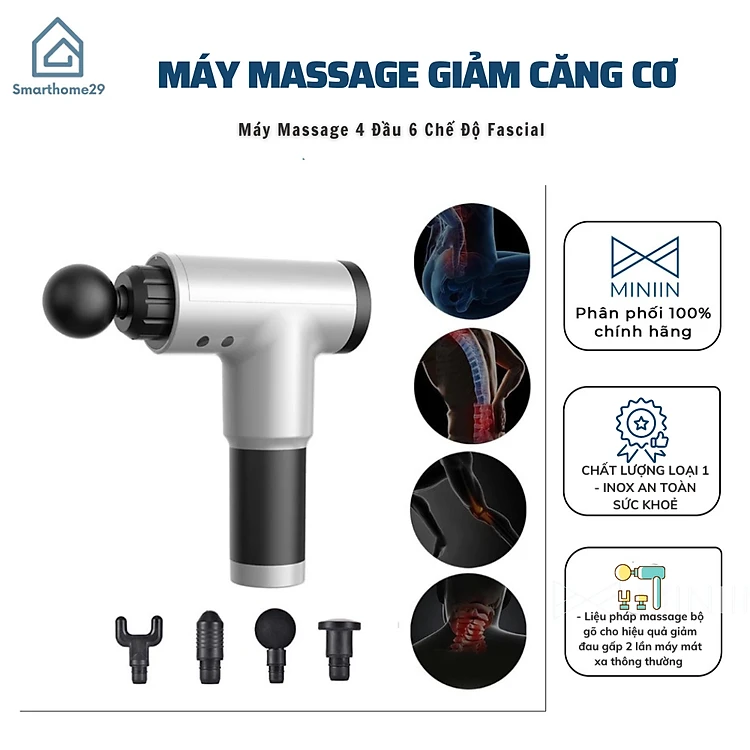 Máy Massage 4 Đầu 6 Chế Độ Fascial, Súng Massage Giảm Căng Cơ, Trị Nhức Mỏi Vai Gáy Hiệu Quả - HÀNG CHÍNH HÃNG MINIIN