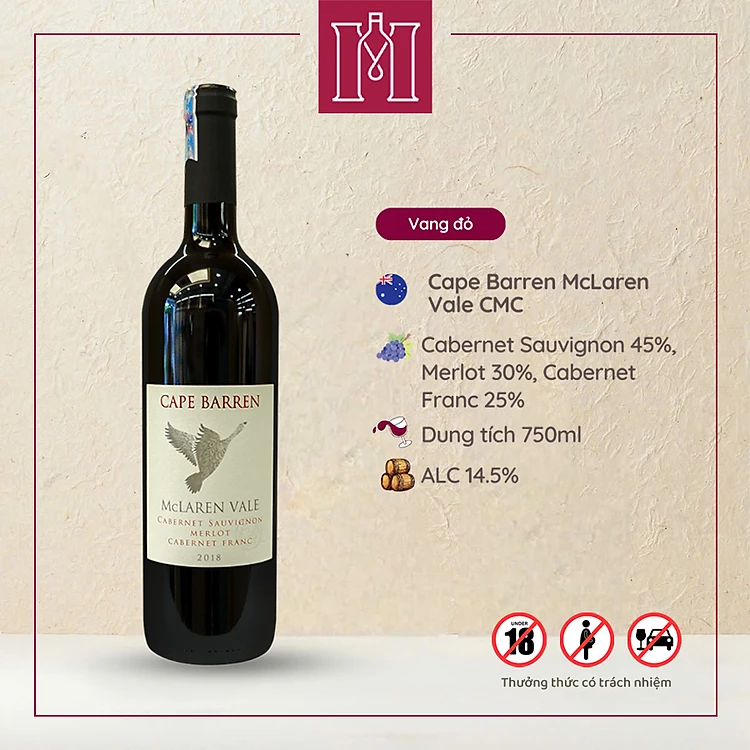 Rượu vang đỏ Úc Cape Barren McLaren Vale Cabernet Sauvignon Merlot Cabernet Franc 750ml 14.5% nhập khẩu - Hàng Chính Hãng