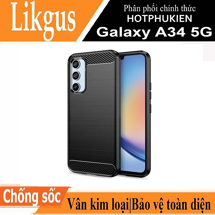 Ốp lưng chống sốc vân kim loại cho Samsung Galaxy A34 5G hiệu Likgus (chuẩn quân đội, chống va đập, chống vân tay) - Hàng nhập khẩu