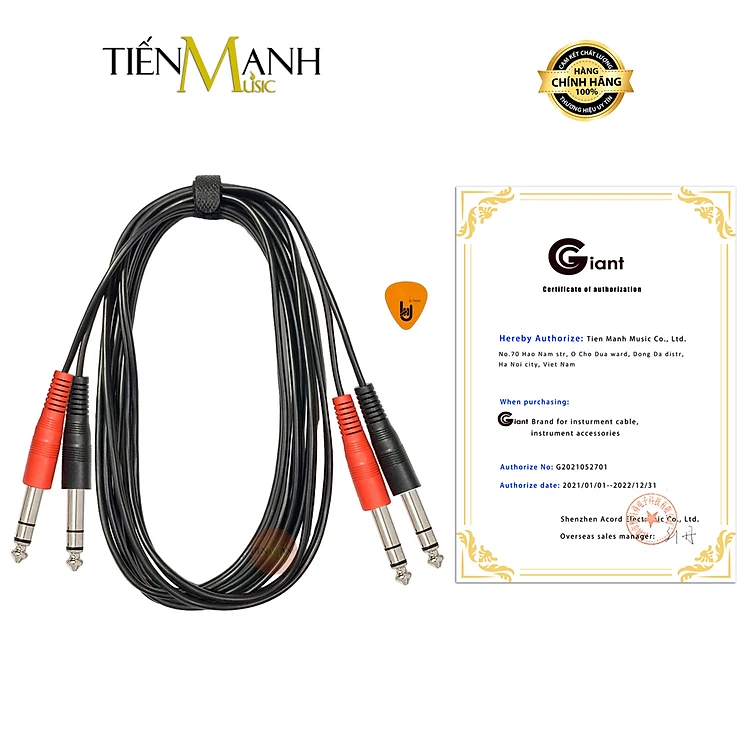 Cặp Dây Cáp Loa Kiểm Âm Giant 2 Đầu 6ly Stereo Balanced TRS GC25 Ggiant 1/4 in 6 ly 6.35mm Giắc Rắc Studio Monitor Cable Hàng Chính Hãng - Kèm Móng Gẩy DreamMaker