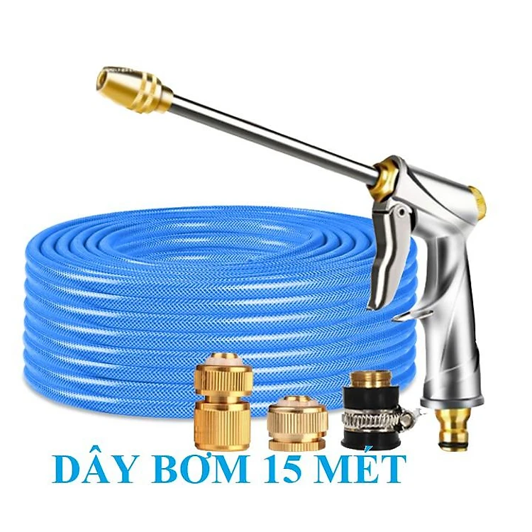 Vòi Xịt Rửa Xe️ Bộ dây vòi xịt nước rửa xe, tưới cây , tăng áp 3 lần, loại 15m 206701-2 đầu đồng, cút đồng