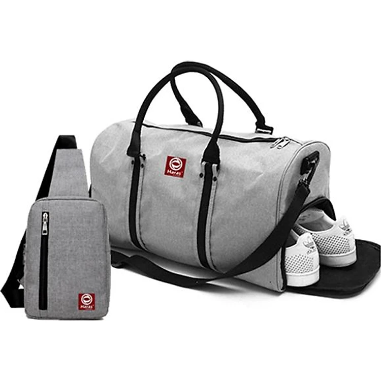 Combo Túi Du Lịch HARAS HRTK201 (26 x 46 cm) - Xám + Túi Đeo Chéo HARAS HRTK147 (16 x 24 cm) - Xám