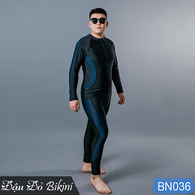 Đồ bơi nam cỡ đại đến 130kg, quần áo tắm big size cho người béo mập, áo dài tay khoá kéo & quần dài chống nắng, chất thun bơi lạnh Hàn co giãn đa chiều | BN036