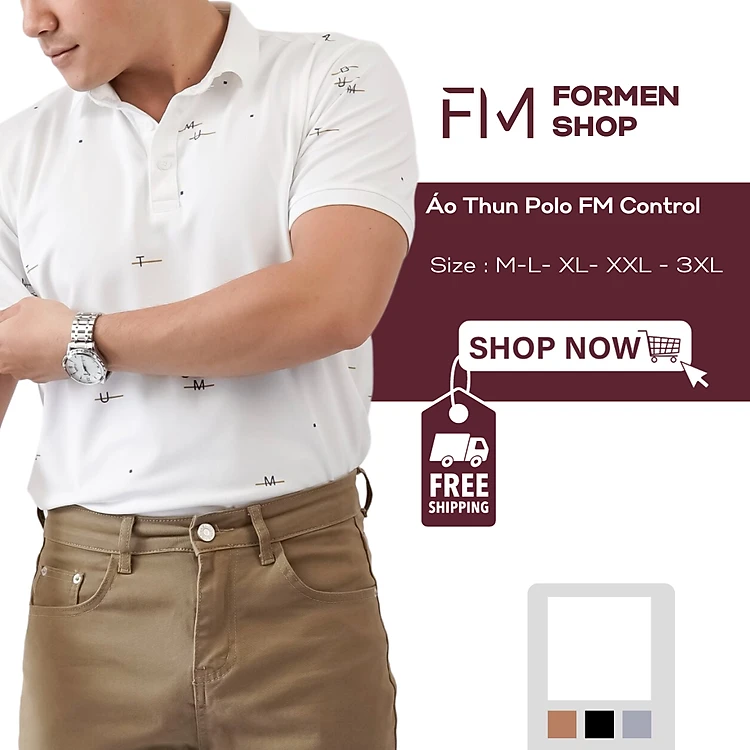 Áo polo nam phối họa tiết trẻ trung năng động, chất thun Polyester chống nhăn, chống bắm bụi - FORMEN SHOP - FMPS212