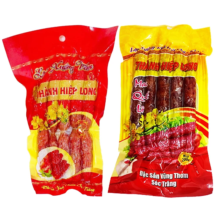 Lạp xưởng Thành Hiệp Long tự hào là đơn vị sản xuất Lạp Xưởng uy tín tại Sóc Trăng. Lạp xưởng được sản xuất từ những con Tôm Sú Vùng Vĩnh Châu, Sóc Trăng kết hợp với nạc đùi của Heo khoảng 3-4 tháng tuổi cùng với lớp mỡ bụng được lựa chọn kỹ càng sau đó được xay nhiễn và trộn với hương vị, gia vị theo công thức gia truyền. Cuối cùng nhồi vào ruột lợn phơi nắng và được sấy trong lo than khoảng 3 đến 4 ngày đêm. Do đó, giữ được đặc trưng của hương vị Lạp xưởng truyền thống. Hạn sử dụng: 6 tháng kể từ ngày sản xuất. Lạp xưởng được hút chân không và đóng gói cẩn thận trong túi 200gr tiện lợi cho việc tiêu dùng tại nhà và mang theo du lịch ngắn ngà