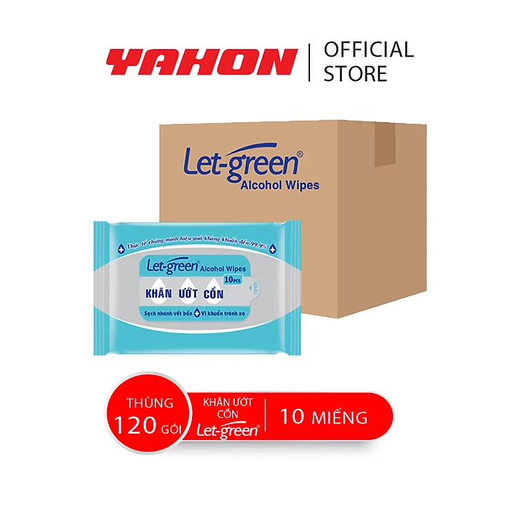 Thùng 120 Gói Khăn Ướt Cồn LET-GREEN 10 Miếng | Sạch Khuẩn, Sạch Bẩn