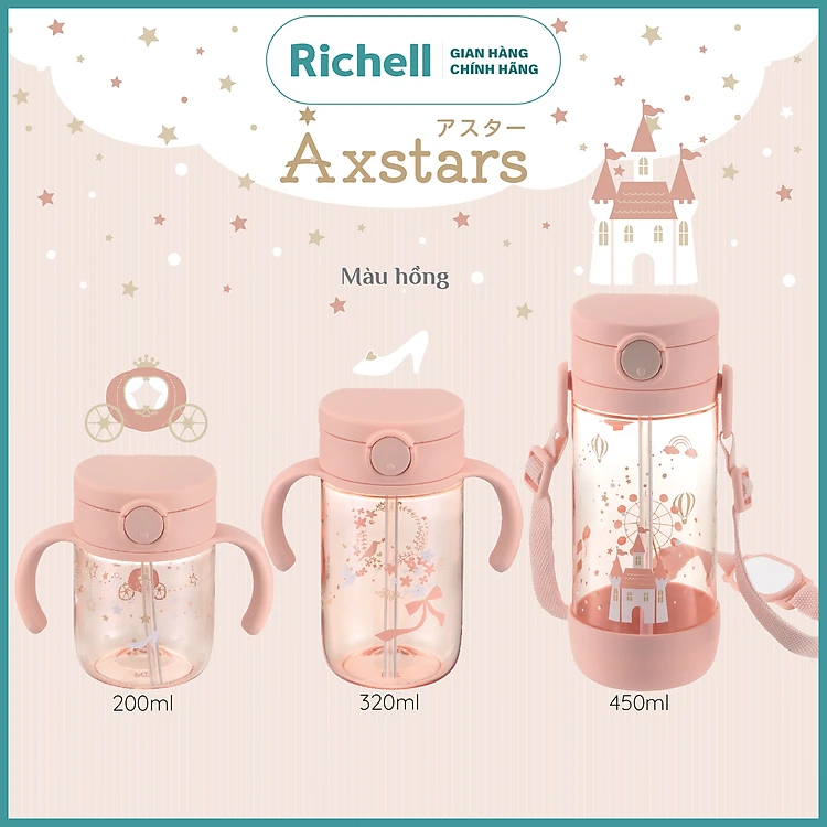 Bình ống hút AXSTARS Richell Nhật Bản 200ml chống sặc cho bé từ 6 tháng | Baby
