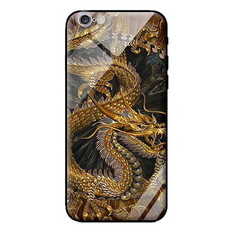 Ốp kính cường lực cho iPhone 6 Plus Rồng Vàng Nền Đen - Hàng chính hãng