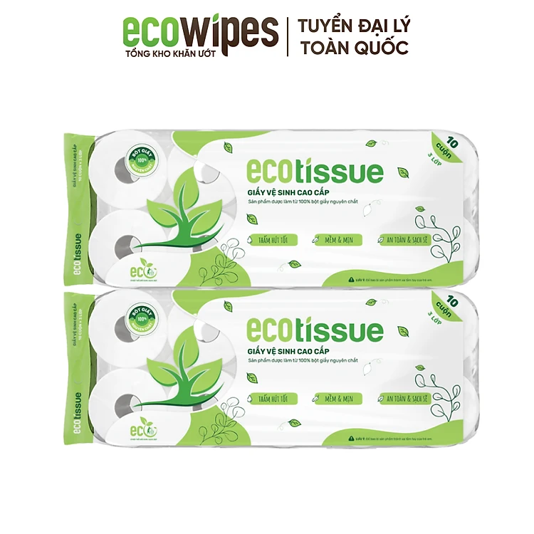 Giấy vệ sinh giấy cuộn cao cấp Ecotissue 3 lớp lốc 10 cuộn có lõi/không lõi cao cấp mềm dai tự nhiên