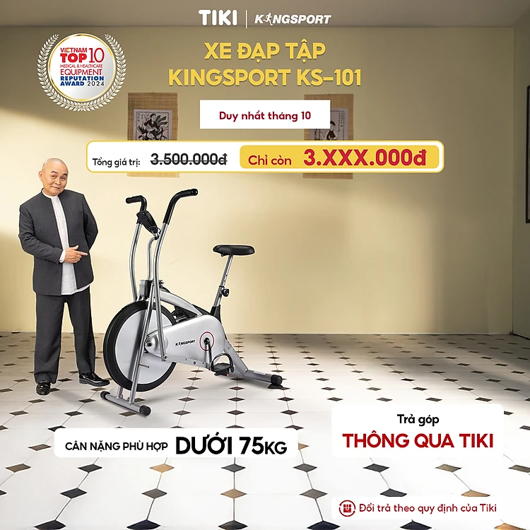 Xe đạp tập KINGSPORT KS-101 tập luyện toàn thân, tích hợp đồng hồ đo lường chỉ số, cân nặng phù hợp từ dưới 75kg