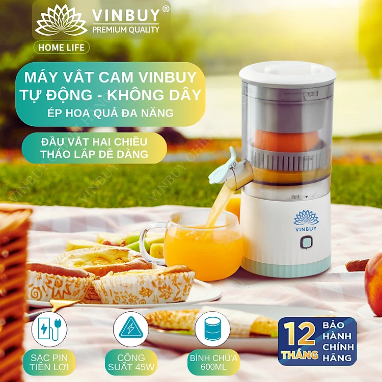 Máy vắt cam tự động, máy ép cam, ép hoa quả đa năng nhỏ gọn dung tích lớn , pin sạc không dây tiện lợi di chuyển mọi nơi, hàng chính hãng - VinBuy