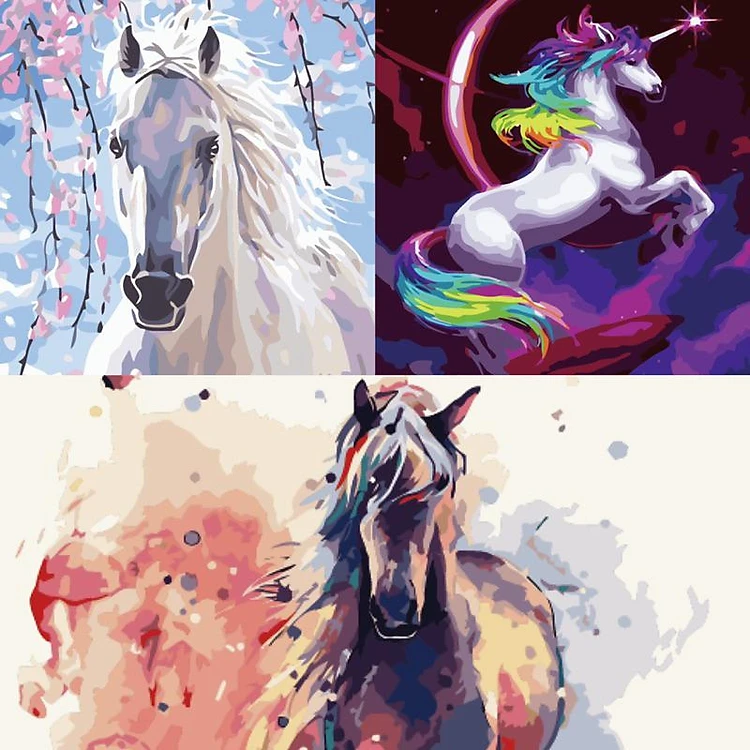 Tranh tô màu theo số Tranh sơn dầu số hoá hình ngựa 30*40cm kèm khung