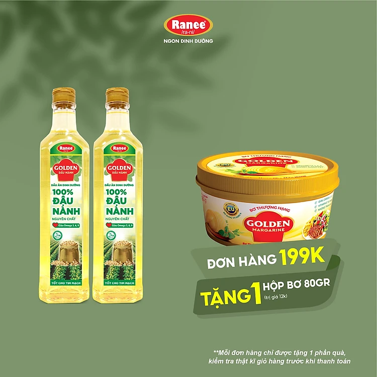 {Đơn 199k tặng hộp bơ 80g} Combo 2 chai Dầu Đậu Nành cao cấp Golden 1 lít (1 lít/chai x 2 chai)