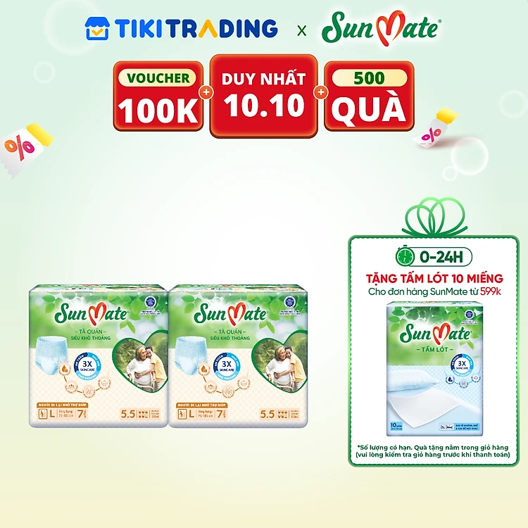 Combo 2 Gói Tã Quần Người Lớn Sunmate Khô Thoáng L7 (7 Miếng/ Gói)
