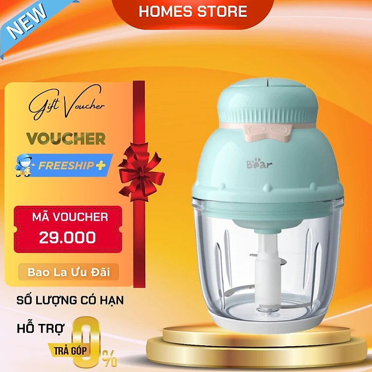 Máy Xay Thịt, Máy Xay Ăn Dặm Bear GR-B06V1 Xay Cực Êm Dung Tích 0.6 Lít Công Suất 200 W- Hàng Chính Hãng