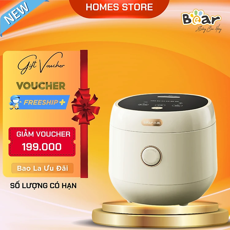 Nồi Cơm Cao Tần Thông Minh Đa Năng BEAR SB-NC30B Nấu Cơm Cực Ngon Dung Tích 3 Lít Công Suất 600 W - Hàng Chính Hãng