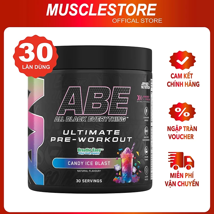 ABE Pre Workout - Applied Nutrition (30 Lần Dùng), Tăng Sức Mạnh Sức Bền, Tỉnh Táo Tập Trung Trước Tập