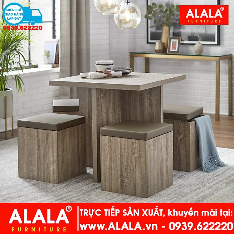 Bộ bàn ăn ALALA941 gỗ HMR chống nước - ww.ALALA.vn - 0939.622220