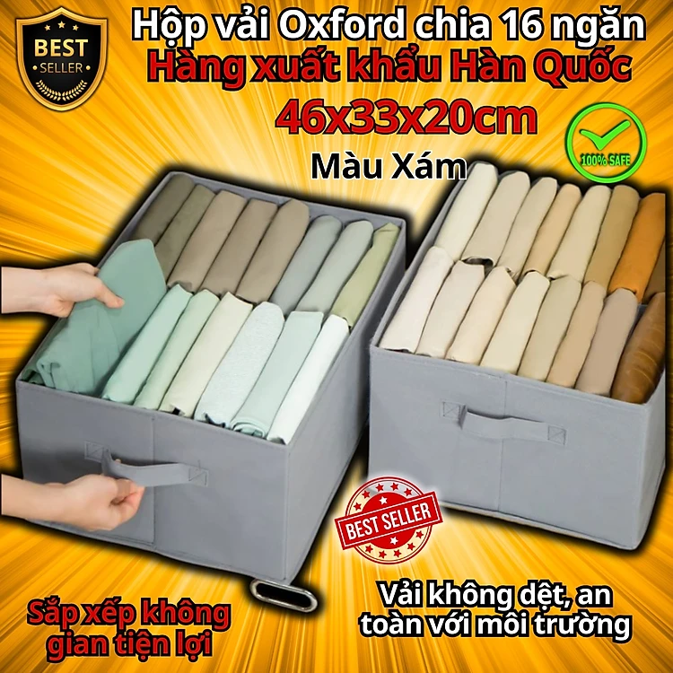 Hộp vải đựng quần áo chia 9 ngăn - 16 ngăn đa năng D Danido - Khay đựng đồ 9 ngăn tiện ích, chất liệu cao cấp vải không dệt có nắp, an toàn môi trường