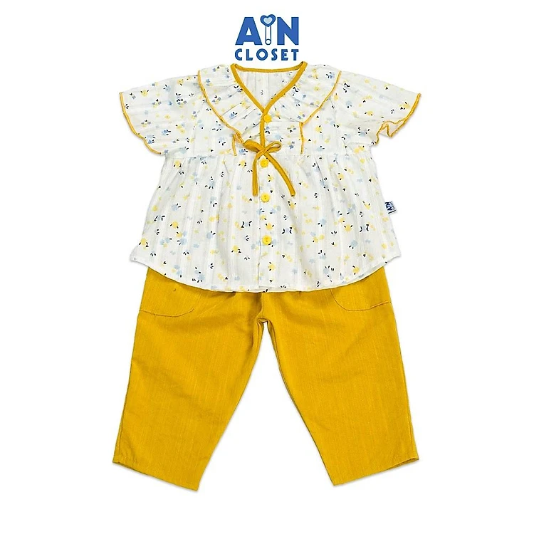 Bộ quần áo dài tay ngắn bé gái họa tiết hoa Nhí Bèo quần vàng - AICDBGUQ5VAL - AIN Closet