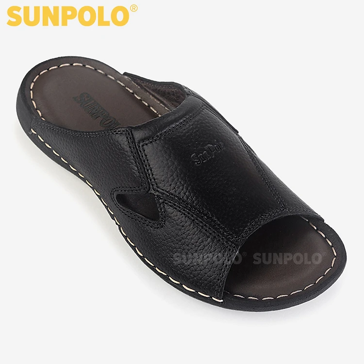 Dép nam quai ngang da bò đế cao su DQN020 phiên bản đen