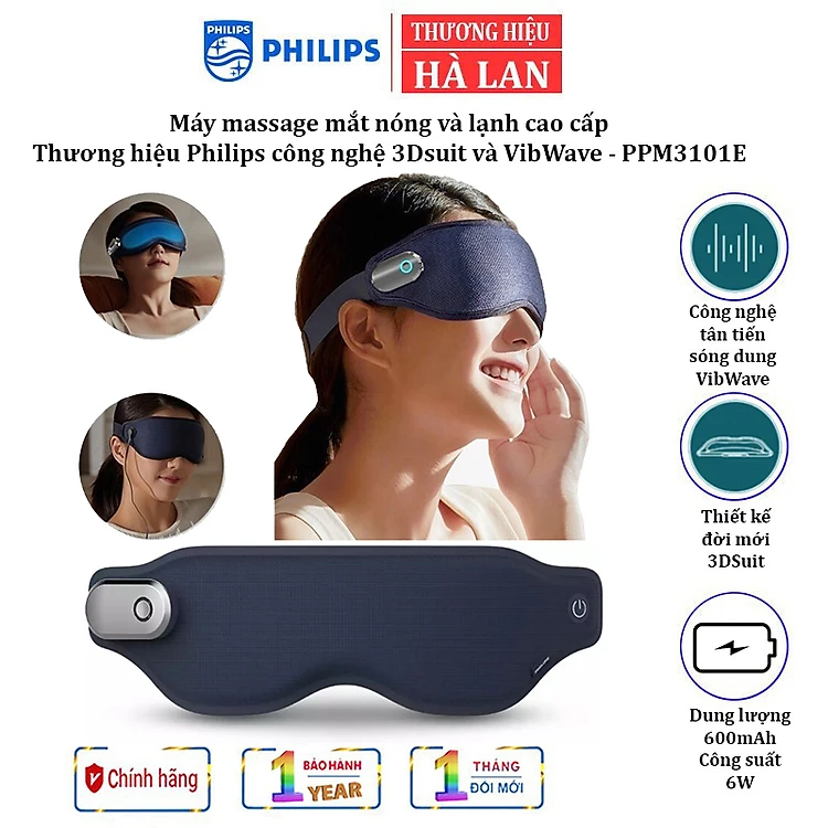 Máy massage mắt nóng và lạnh công nghệ 3Dsuit và VibWave. Thương hiệu Philips Hà Lan cao cấp PPM3101E - Dung lượng pin: 600mAh - HÀNG NHẬP KHẨU