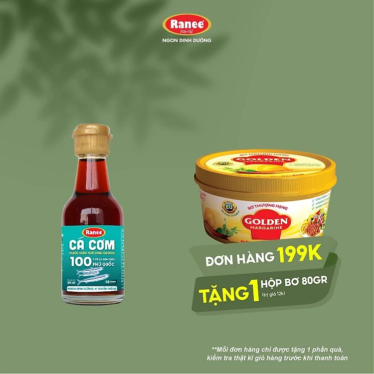 {Đơn 199k tặng hộp bơ 80g} Nước mắm dinh dưỡng Ranee cá cơm vị truyền thống 40 độ đạm chai 60ml ( 1 chai x 60ml)