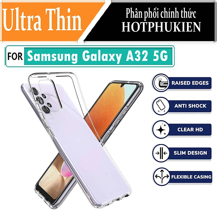 Ốp lưng silicon dẻo cho Samsung Galaxy A32 5G hiệu Ultra Thin trong suốt mỏng 0.6mm độ trong tuyệt đối chống trầy xước - Hàng nhập khẩu
