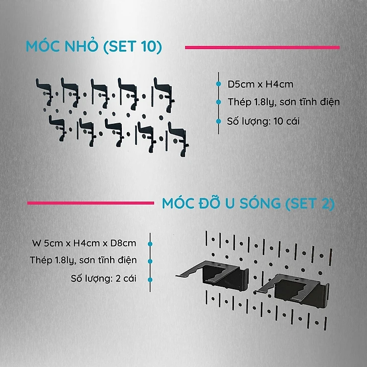 Bảng Pegboard Kim Loại & Phụ Kiện Móc Treo Dụng Cụ Cơ Khí Chuyên Nghiệp, Thương Hiệu SMLIFE