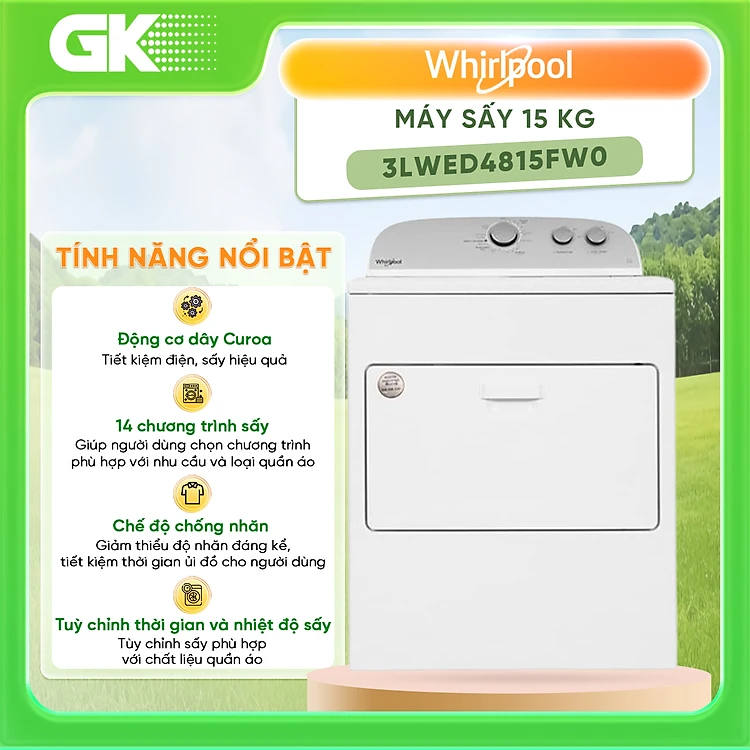 Máy sấy Whirlpool 3LWED4815FW0 15 kg - Hàng chính hãng (chỉ giao HCM)