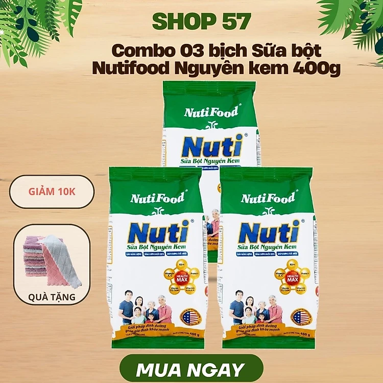 Combo 3 Túi Sữa Bột Nguyên Kem Nutifood 400g – Dinh Dưỡng Giúp Gia Đình Khỏe Mạnh – Hàng Chính Hãng, Date Mới Nhất