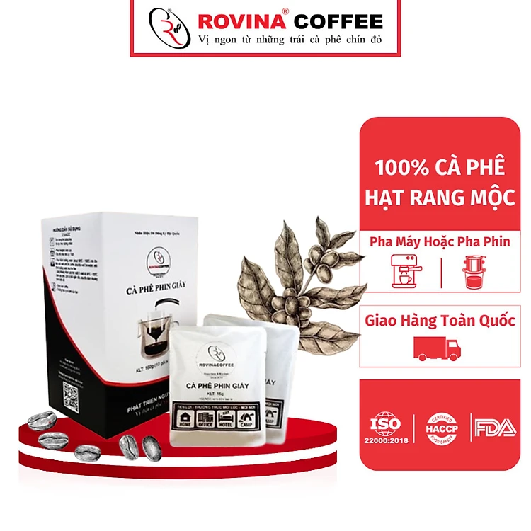 Cà Phê Phin Giấy Rovina – Tiện Lợi – Mọi Lúc – Mọi Nơi Nguyên Chất 100%, Vẹn Tròn Hương Vị Nguyên Bản, Đậm Ngon Đúng Chất