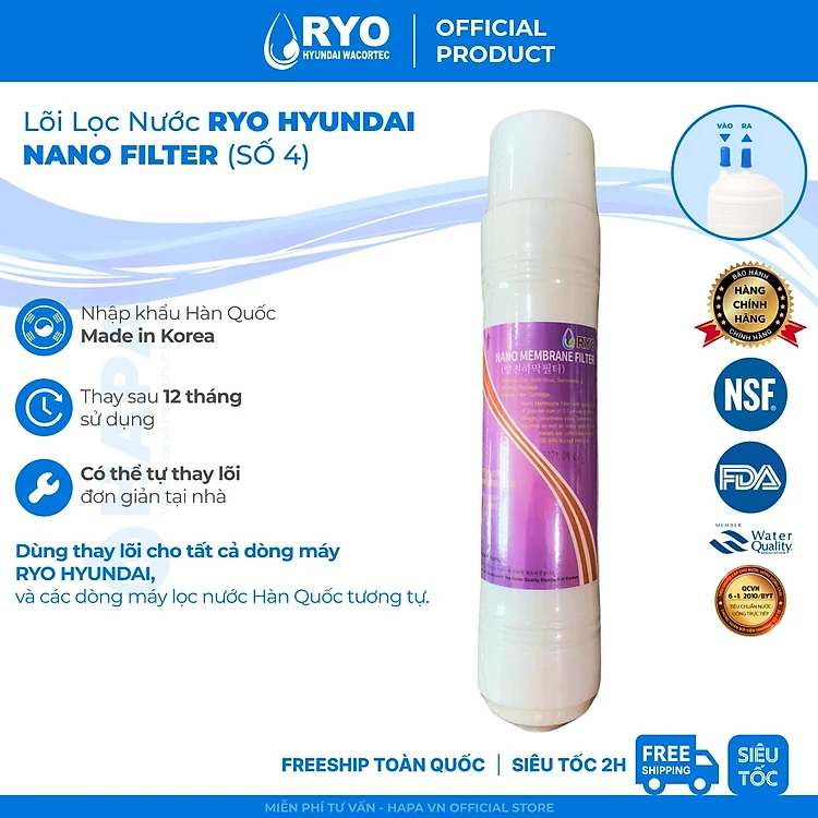 Lõi Lọc Nước RYO Hyundai RP-04 Post Carbon Filter / NANO Filter Nhập Khẩu Hàn Quốc - Hàng Chính Hãng