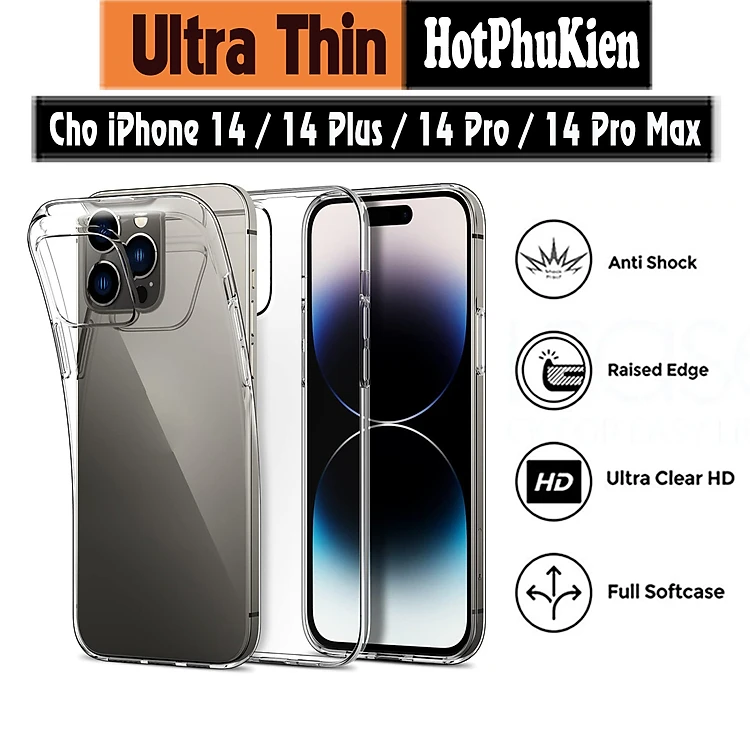 Ốp lưng silicon dẻo cho iPhone 14 / 14 Plus / 14 Pro / 14 Pro Max hiệu Ultra Thin trong suốt mỏng 0.6mm độ trong tuyệt đối chống trầy xước - Hàng nhập khẩu