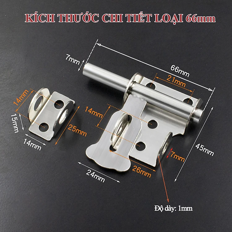 Chốt Khóa Cửa Then Ngang KUNBE Chất Liệu Thép Không Gỉ Có Lỗ Gài Phù Hợp Nhiều Loại Cửa, Tủ
