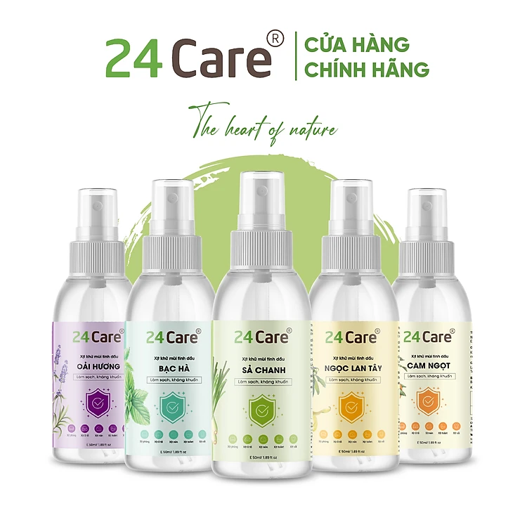Xịt Phòng Tinh Dầu Sả Chanh Hữu Cơ Organic 24Care 50ML/100ML - Kháng khuẩn - Khử mùi hôi - Đuổi muỗi, kiến ba khoan,Vắt - Côn trùng - Hương thơm thư giãn.