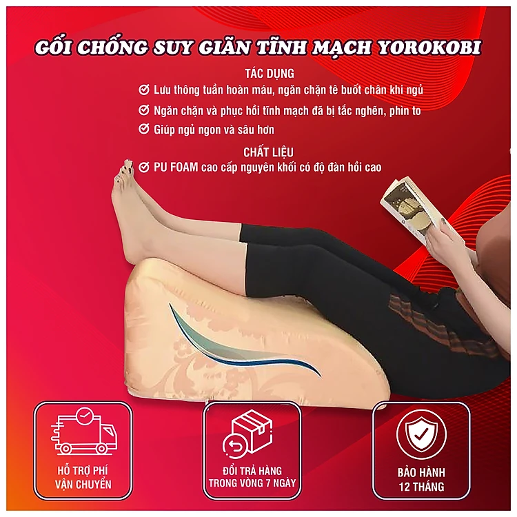 Đột phá, sáng tạo trong thiết kế: thay vì chỉ là một chiếc gối hình thông thường, gối giãn tĩnh mạch Yorokobi có đường cong mềm mại, hoàn toàn vừa vặn, ôm trọn bắp chân, vừa giúp kê chân khi đặt nằm lại giúp tựa lưng, tựa cổ khi ngồi, đọc sách, làm việc, xem TV…vô cùng tiện lợi.