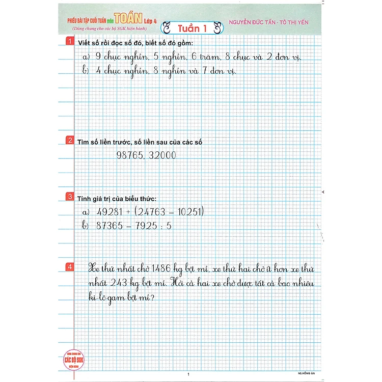 phiếu bài tập cuối tuần môn toán lớp 4 (dùng chung cho các bộ sgk hiện hành)