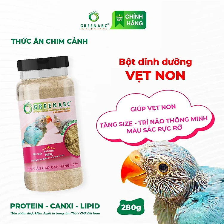 Bột dinh dưỡng cho Vẹt Non, Chim Non GREENABC – Bổ sung dinh dưỡng protein, canxi, lipid - Hộp 280g