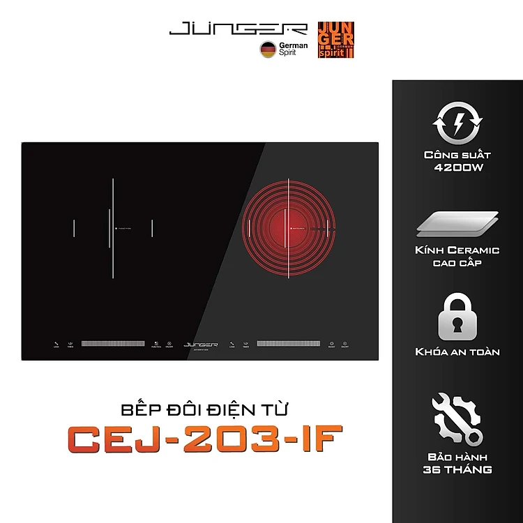 Bếp đôi điện từ hồng ngoại JUNGER CEJ-203-IF 4200W Không kén nồi Hàng Chính Hãng Bảo Hành 36 Tháng