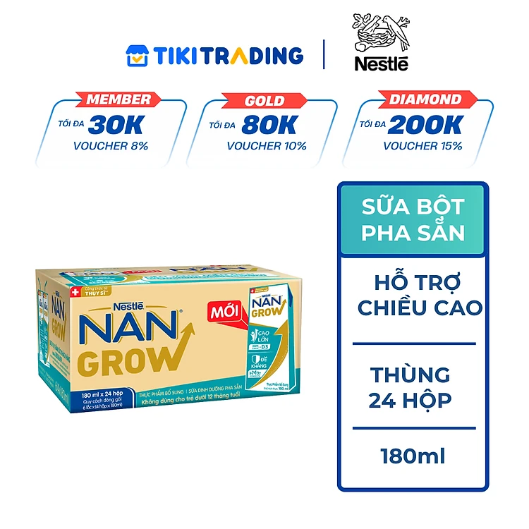 Thùng sữa bột pha sẵn Nestlé NANGROW 6(4x180ml) sữa mát công thức từ Thụy Sĩ với 100% Canxi giúp bé cao lớn vượt trội dành cho bé từ 1 tuổi