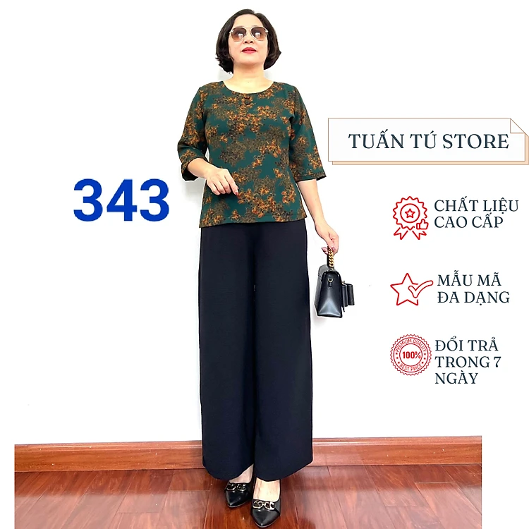 Đồ trung niên Bộ phối Áo lụa Hàn Châu mềm mượt thoáng mát với quần Đũi vải dày dặn đủ size từ 45kg tới 65kg - Tuấn Tú Store 68