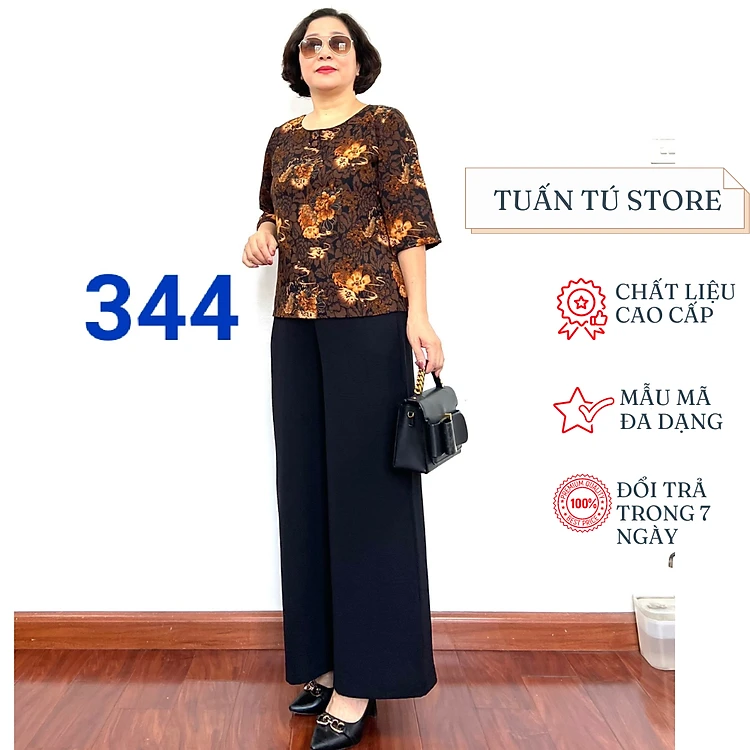 Đồ trung niên Bộ phối Áo lụa Hàn Châu mềm mượt thoáng mát với quần Đũi vải dày dặn đủ size từ 45kg tới 65kg - Tuấn Tú Store 68