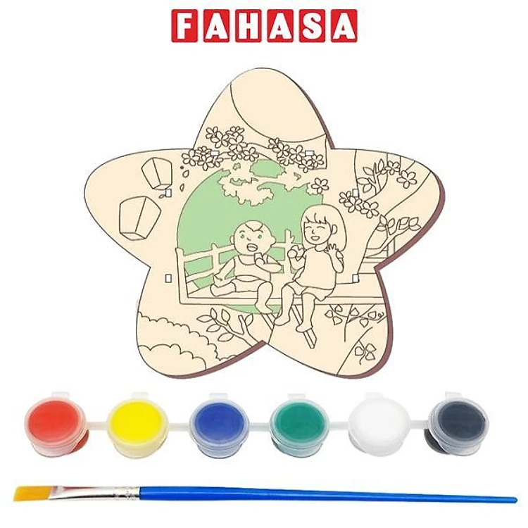 Lồng Đèn Trung Thu Gỗ Mộc Không Màu + Vỉ 6 Màu Nước: Đèn Lân Sao Mộc - Bách Mộc 09 (Có Kèm Pin)