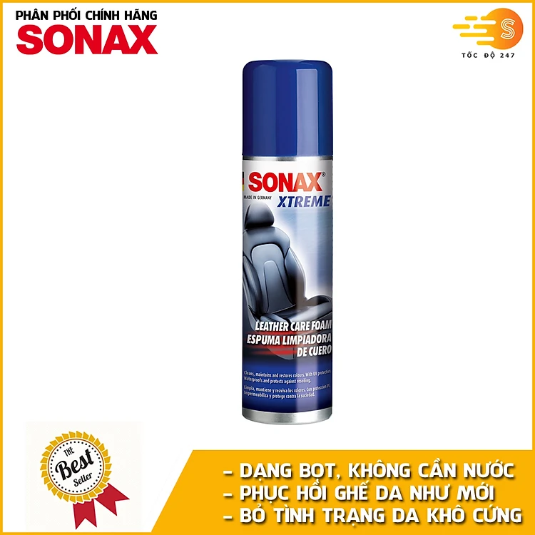 Chai xịt bọt làm sạch nhanh và dưỡng ghế da chuyên dụng Sonax 289100 250ml - Không cần nước, kéo dài tuổi thọ da, hạn chế khô cứng và bong tróc, phục hồi da cũ